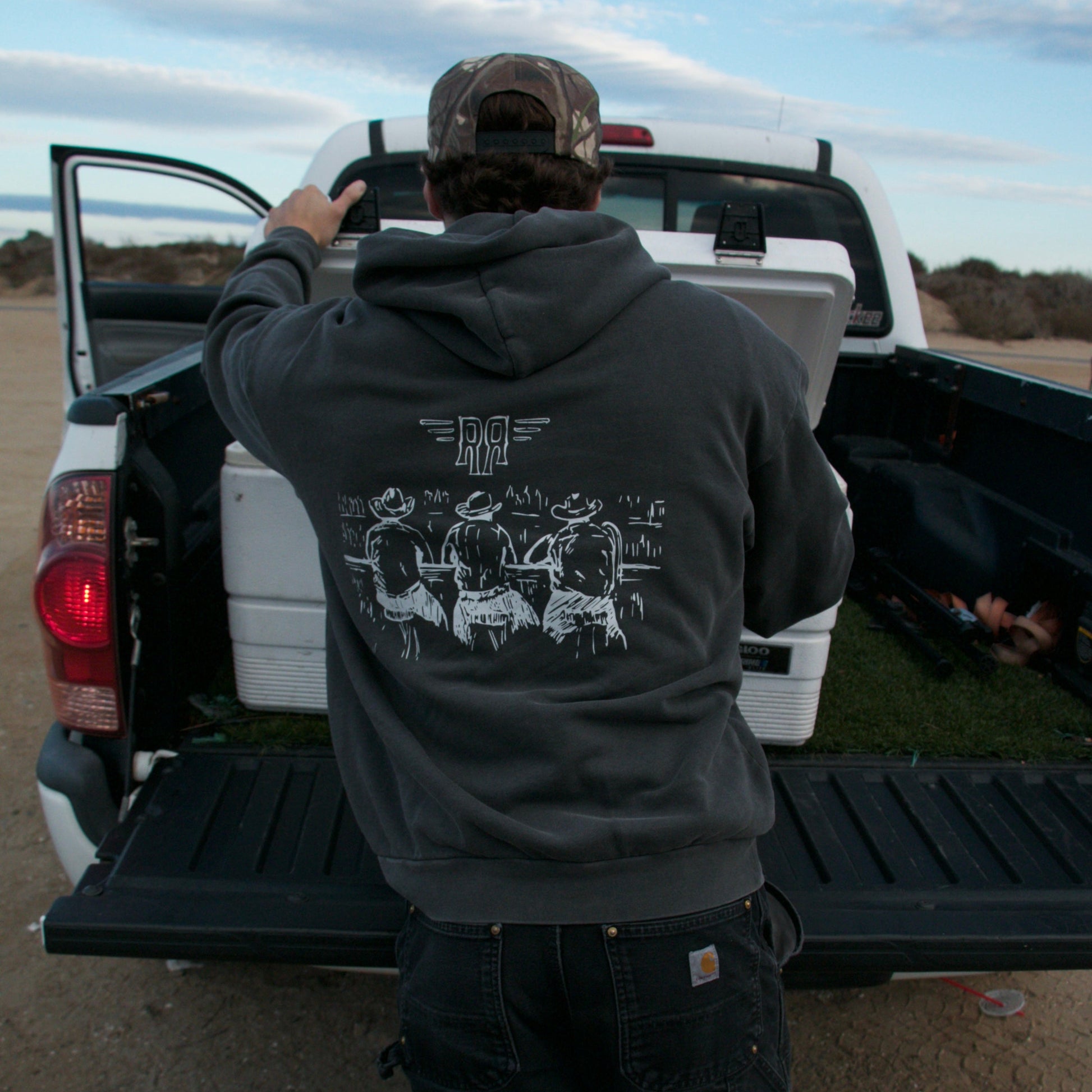 A tribute to late nights, long laughs, and the friends who turn moments into memories. The barstool stories hoodie captures a classic scene — three cowboys sitting at a bar, the rest left to the imagination. This is the kind of night that lit the first spark for Road Runner.. Great company, a "few" drinks, and a story that keeps on running.